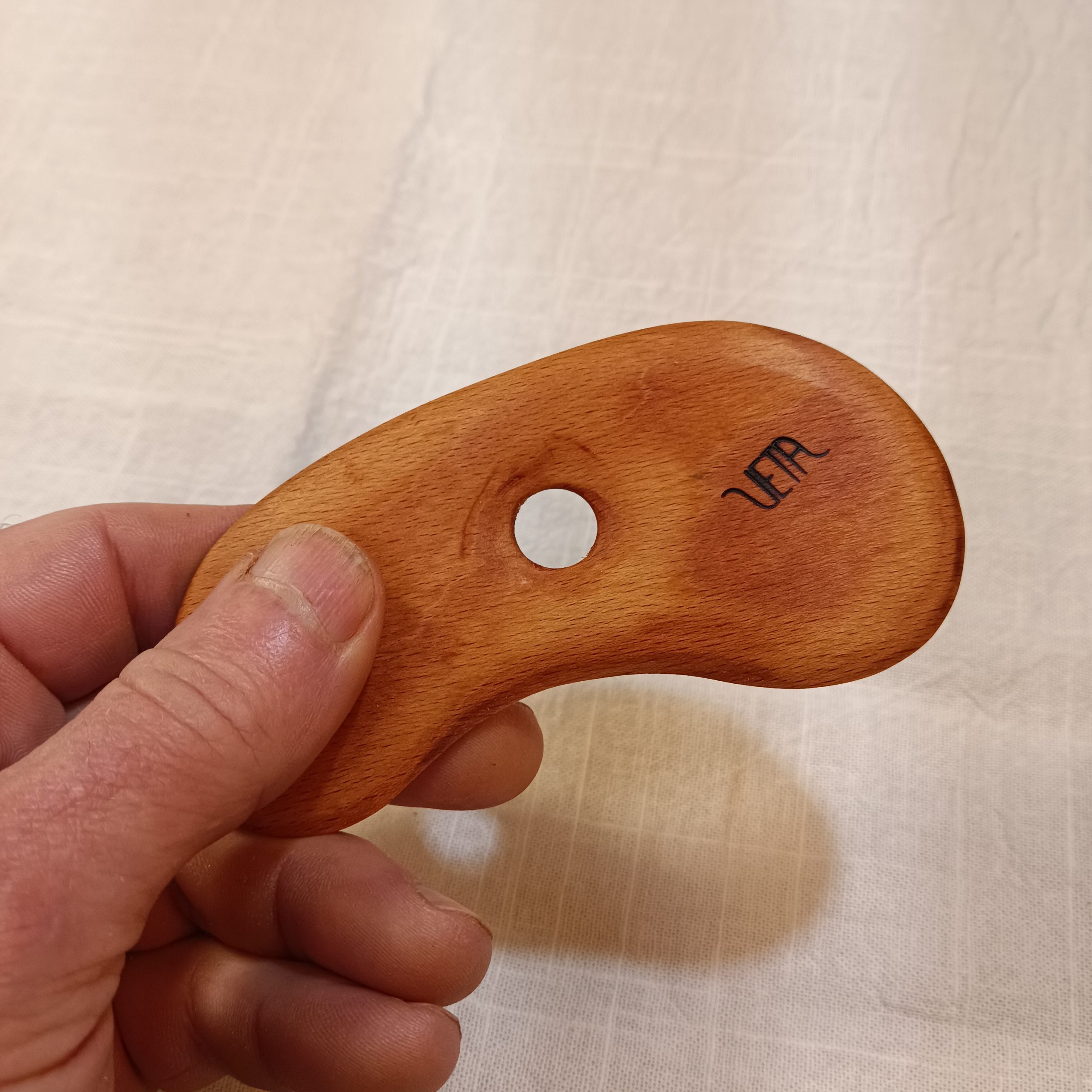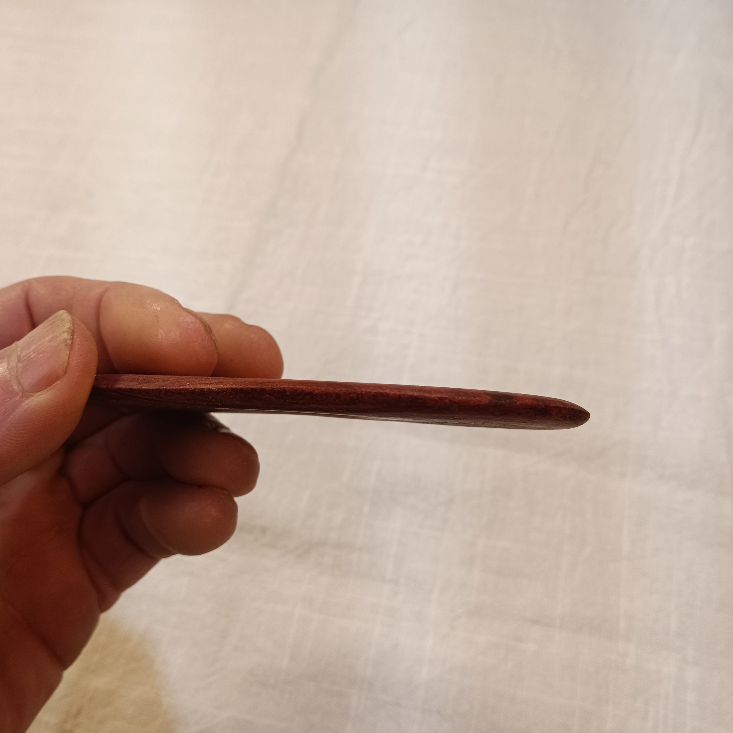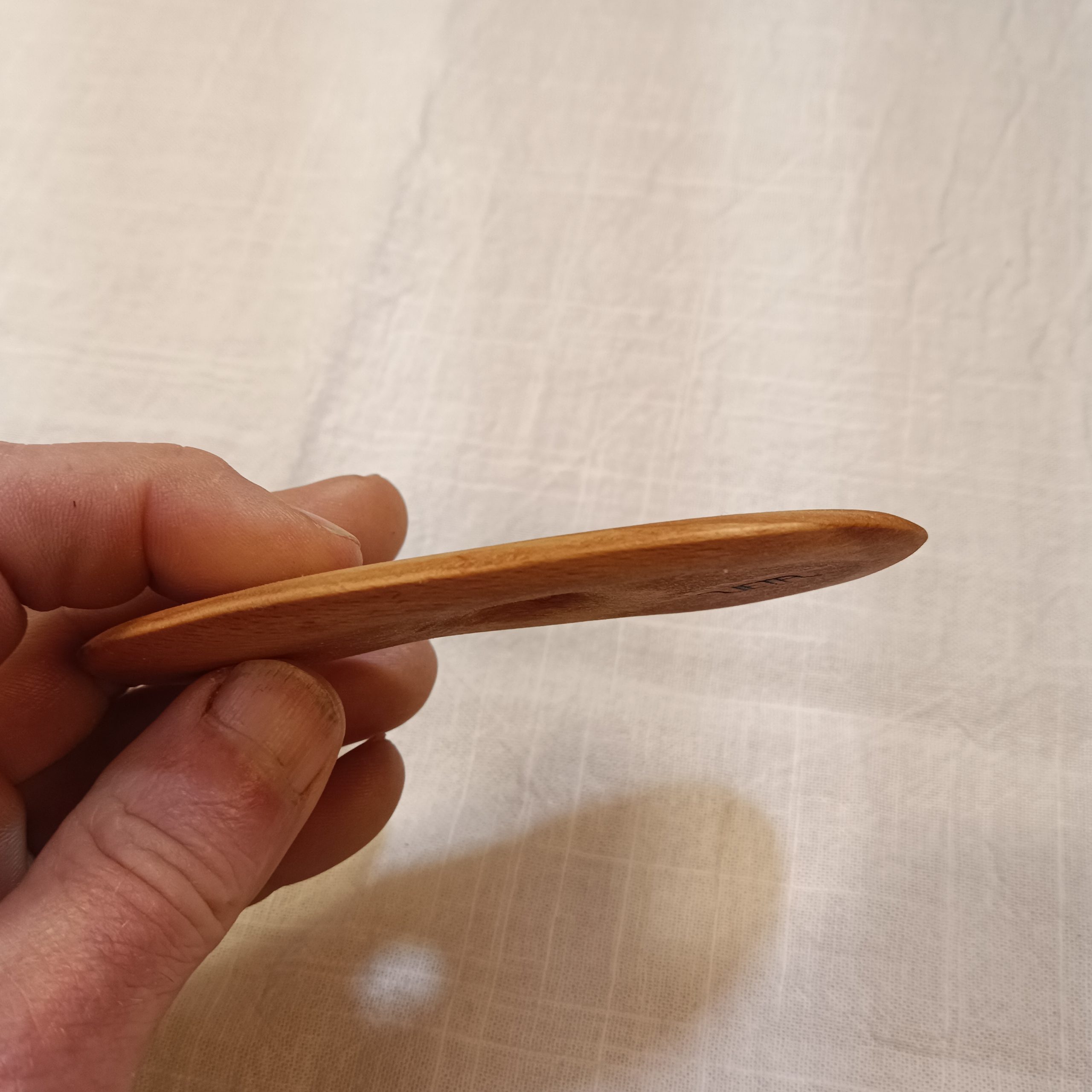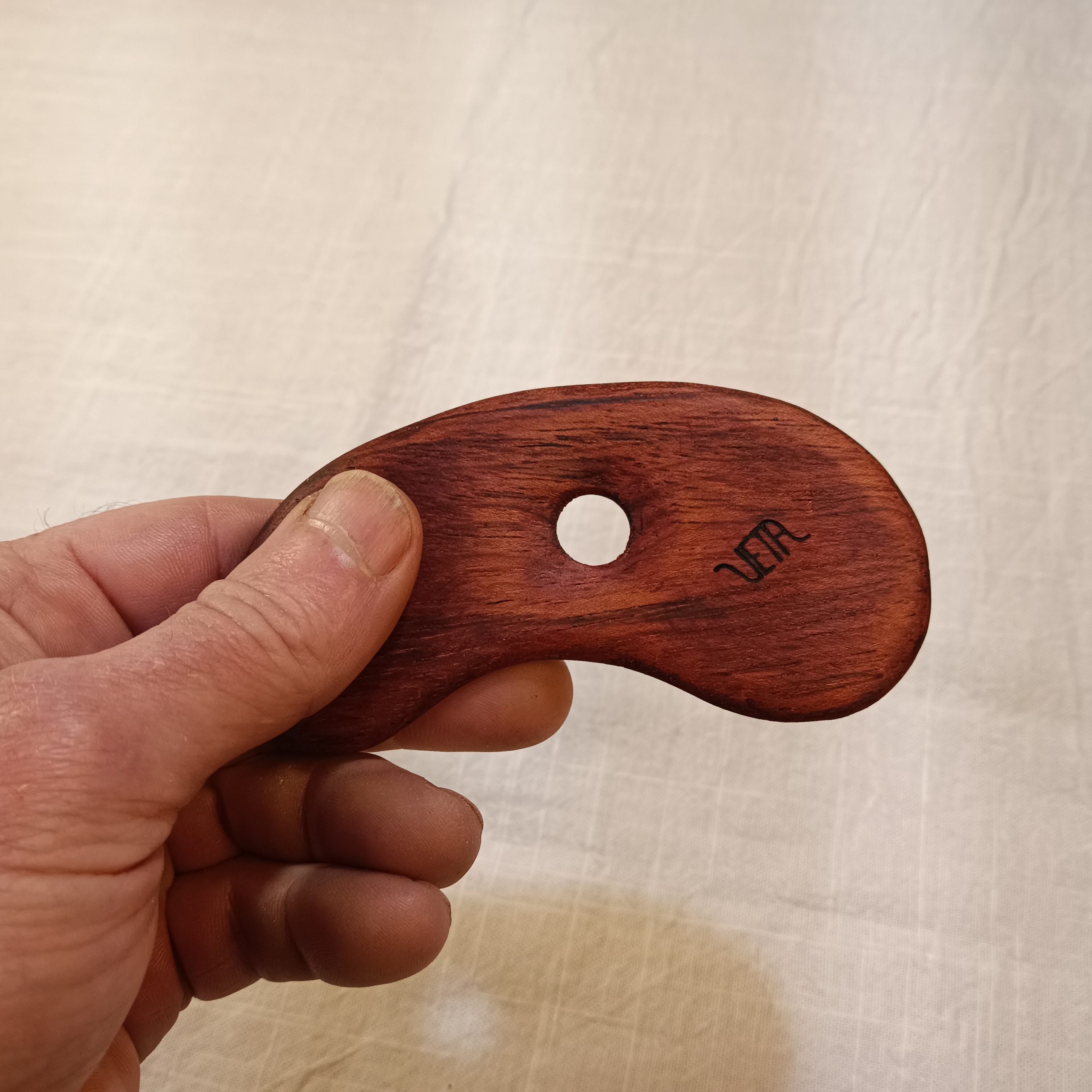 Lama con forma de alubia o riñon con dos curvas ligeramente distintas, hecha a mano